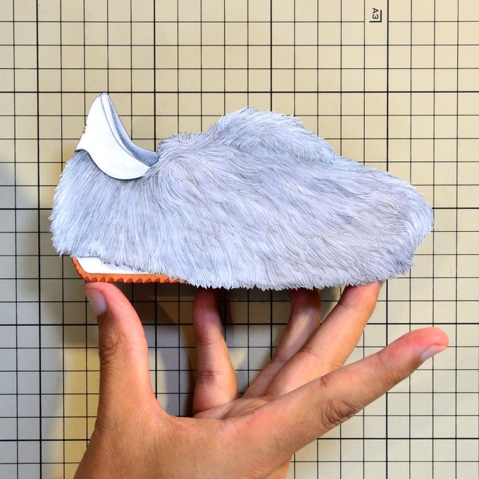 【今日の靴】01962足目 “LOEWE” Flow Runner in Shearling(FW2022) #LOEWE #jonathananderson #sneakers #illustration #copic #copicmarkers #スニーカー #切り絵 #イラスト #コピック