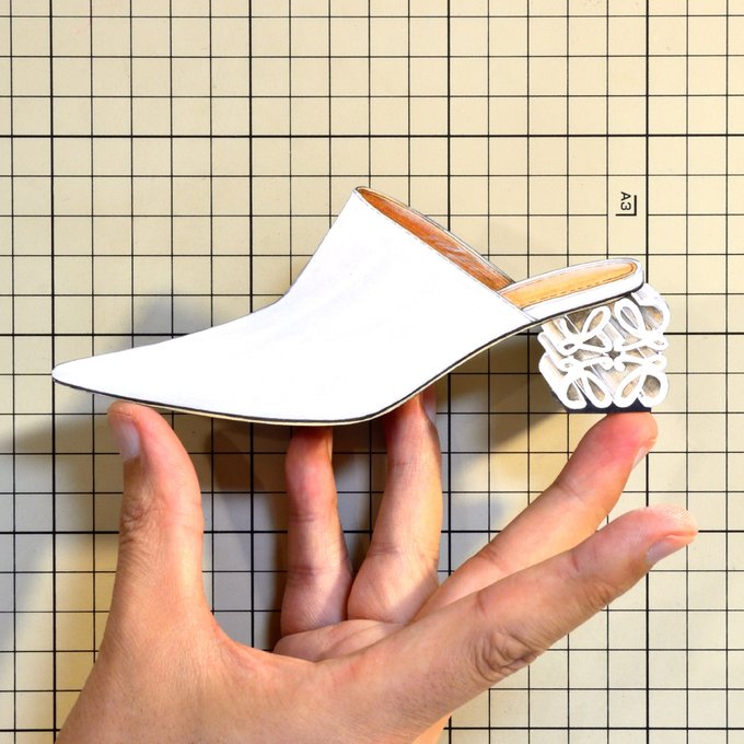 【今日の靴】02065足目 “LOEWE” Anagram Heel 60 Leather Mules #LOEWE #jonathananderson #illustration #copic #copicmarkers #切り絵 #イラスト #コピック