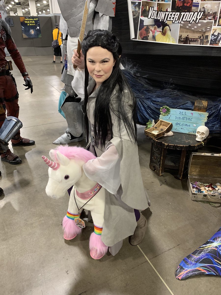 @LiraelSayre Having my Arwen moment by borrowing a Deadpool cosplayers pony is my favorite. It was also my dream cosplay 😍 #lotr #LOTRonPrime #Tolkien #arwenundomiel #lotrcosplay #arwencosplay
