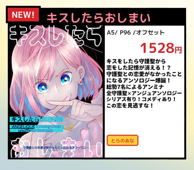 #LOVEAGAIN2お品書き キスしたらおしまい(守護聖との恋愛がなかったことになるアンソロジー)頒布予定です! お求めは、か7まで! 12日22~24女王限定でエアスケブ受付ます(※投下は13日21時〜)