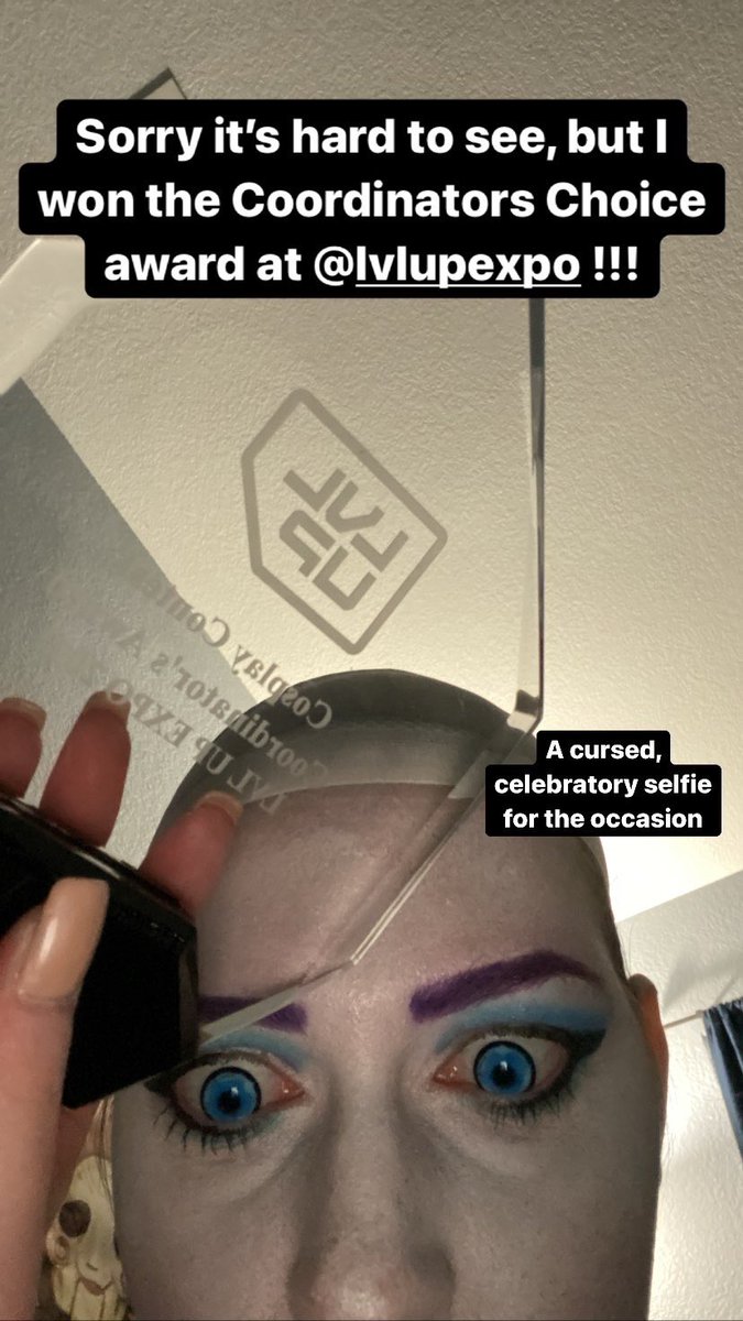 Had an amazing day at #lvlupexpo and competed in the #Cosplay Contest, even winning the Coordinators Choice Award!!! I wasn’t at all expecting to win anything since Spectra was a backup for my Azula cosplay which I didn’t finish on time, but it was cool seeing the Spectra love!!