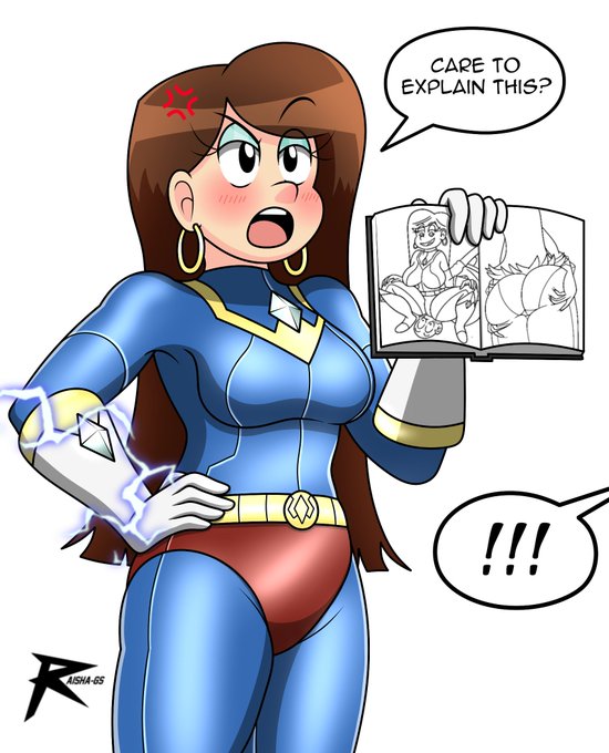 There's no harm in drawing spicy fan art of Lady Ace. Just make sure she doesn't find it. :B Artwork in the image by @WeaVOcracy, used with permission. #LadyAce #AmandaBright #OC #OriginalCharacter #SuperHero #ArtistOnTwitter #DigitalArt #MyArt #RaishaGS
