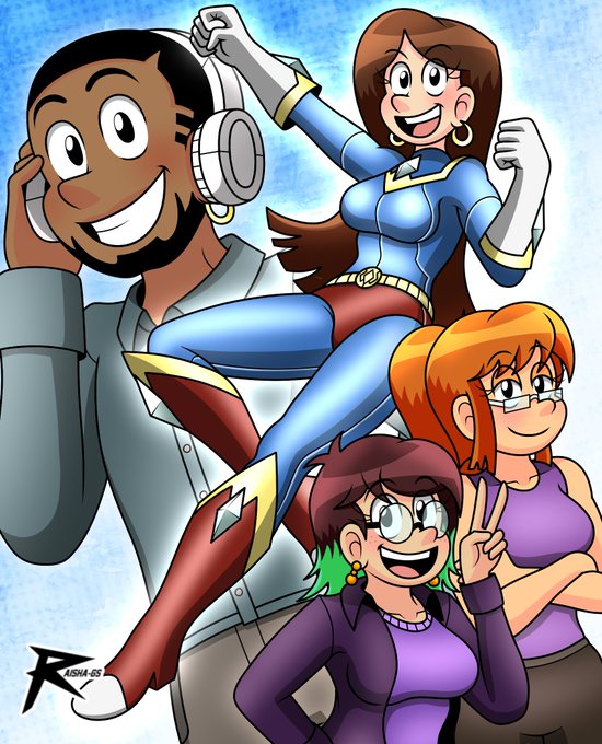 Even a superhero like Lady Ace needs the support of friends! Shown alongside are her besties: Booker Simpson, and Mars and Luba Mortem! #LadyAce #BookerSimpson #LubaMortem #MarsMortem #OC #OriginalCharacter #SuperHero #TheLoudHouse #ArtistOnTwitter #DigitalArt #MyArt #RaishaGS