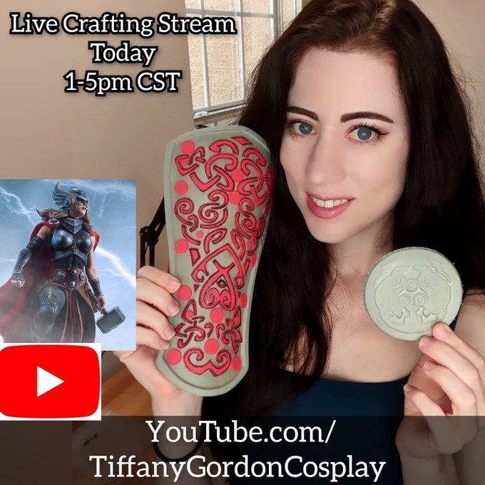 Live crafting stream today on YouTube youtu.be/BBJd0uNiB_Y from 1-5pm CST! Today I will be continuing work on my Lady Thor armor with EVA foam. Come hang out, chat, ask questions and have fun 😊 #evafoam #armor #foam #cosplay #thor #ladythor #janefoster