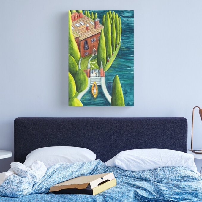 My most recent picture is now up in my #Redbubble shop on lots of stuff tinyurl.com/3abanb53 "The Visit: Lake Como 5" #SupportSmallBusinesses #SmallBusiness #IndependentArtist #GiftIdeas #Painting #LakeComo #LagoDiComo #Italy #Italia #Cushions #ThrowPillows #Decor #Bedroom