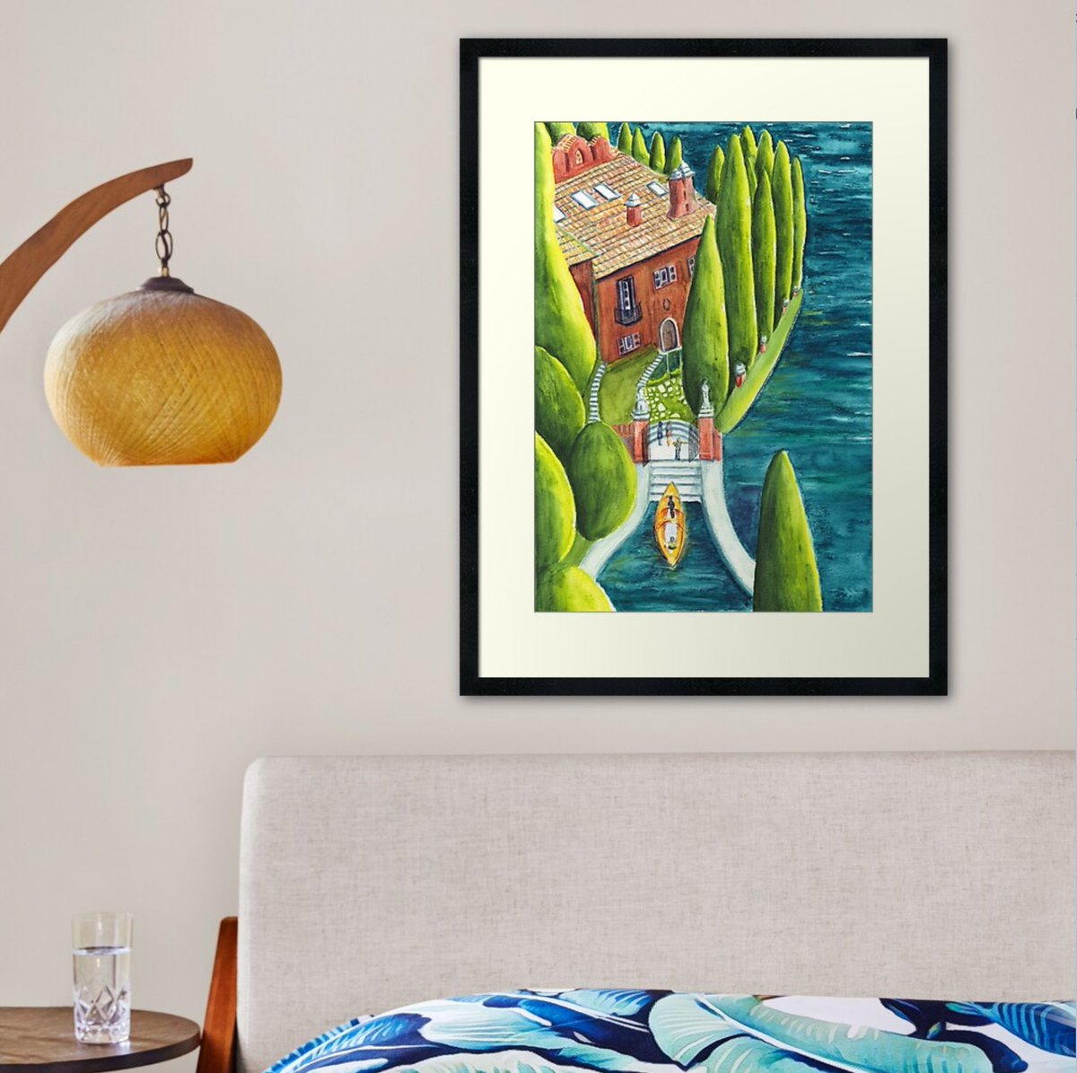 An illustration of a house on Lake Como on lots of stuff in my #Redbubble shop tinyurl.com/2s3tex2z #SmallBusinesses #SupportSmallBusinesses #GiftIdeas #WallArt #Decor #LakeComo #Italy #Italia #LagoDiComo #Landscape #Watercolour #Watercolor