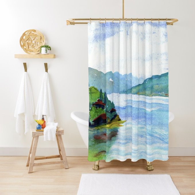 Lake Como on lots of items in my #Redbubble shop tinyurl.com/yemmuk5d Soft tones and little boats #SupportSmallBusinesses #SmallBusinesses #Shower #Bathmat #Scenery #Home #Decor #LakeComo #LagoDiComo #Bath #Italy #ArtistsOnTwitter #Watercolour #ShowerCurtains #Bathroom #Art