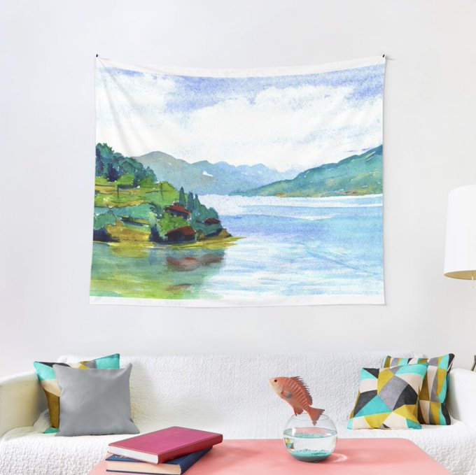 tinyurl.com/sestef7m Lake Como on lots of stuff in my #Redbubble shop #SmallBusinesses #SupportSmallBusinesses #LakeComo #LagoDiComo #WaterColour #Watercolor #Painting #Decor #WallArt #Decor #Interiors #Gifts #Italy #Italia #Landscape #Lake #Posters #Tapestry #Home #LivingRoom