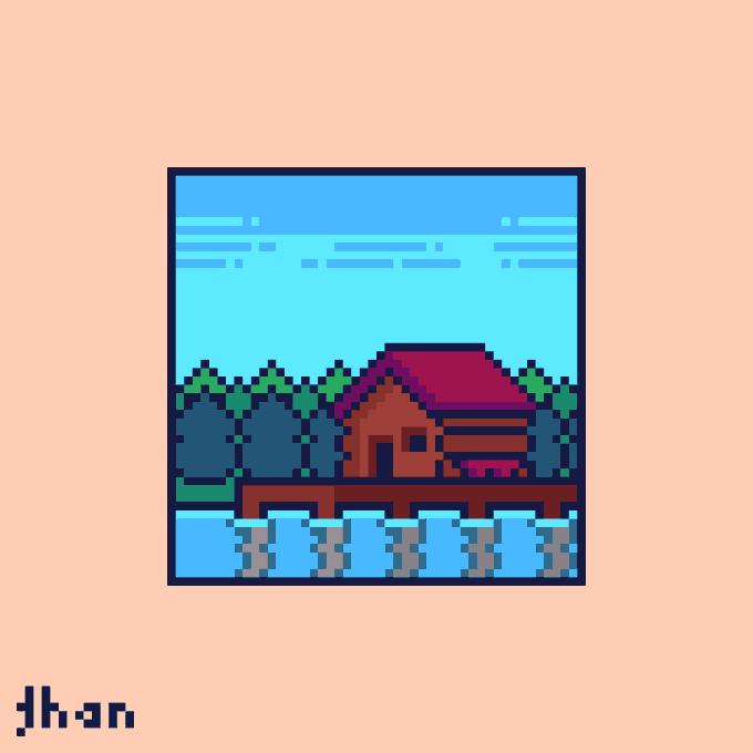 Theme: Lakehouse #pixelart #pixelartist #ドット絵 #aseprite #digitalart #art #pixel_dailies @Pixel_Dailies #minimalism #lakehouse #minimalistart #lake