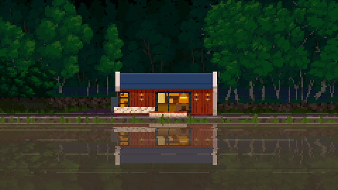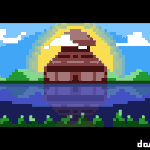 Pixel Daily: 42 Size: 64x32px Theme: #Lakehouse Trying to follow a new routine, hopefully more time to pixel! Here is a simple lakehouse background :3 #pixelart #pixel_dailies @Pixel_Dailies #pixelartist #ドット絵 #pixel