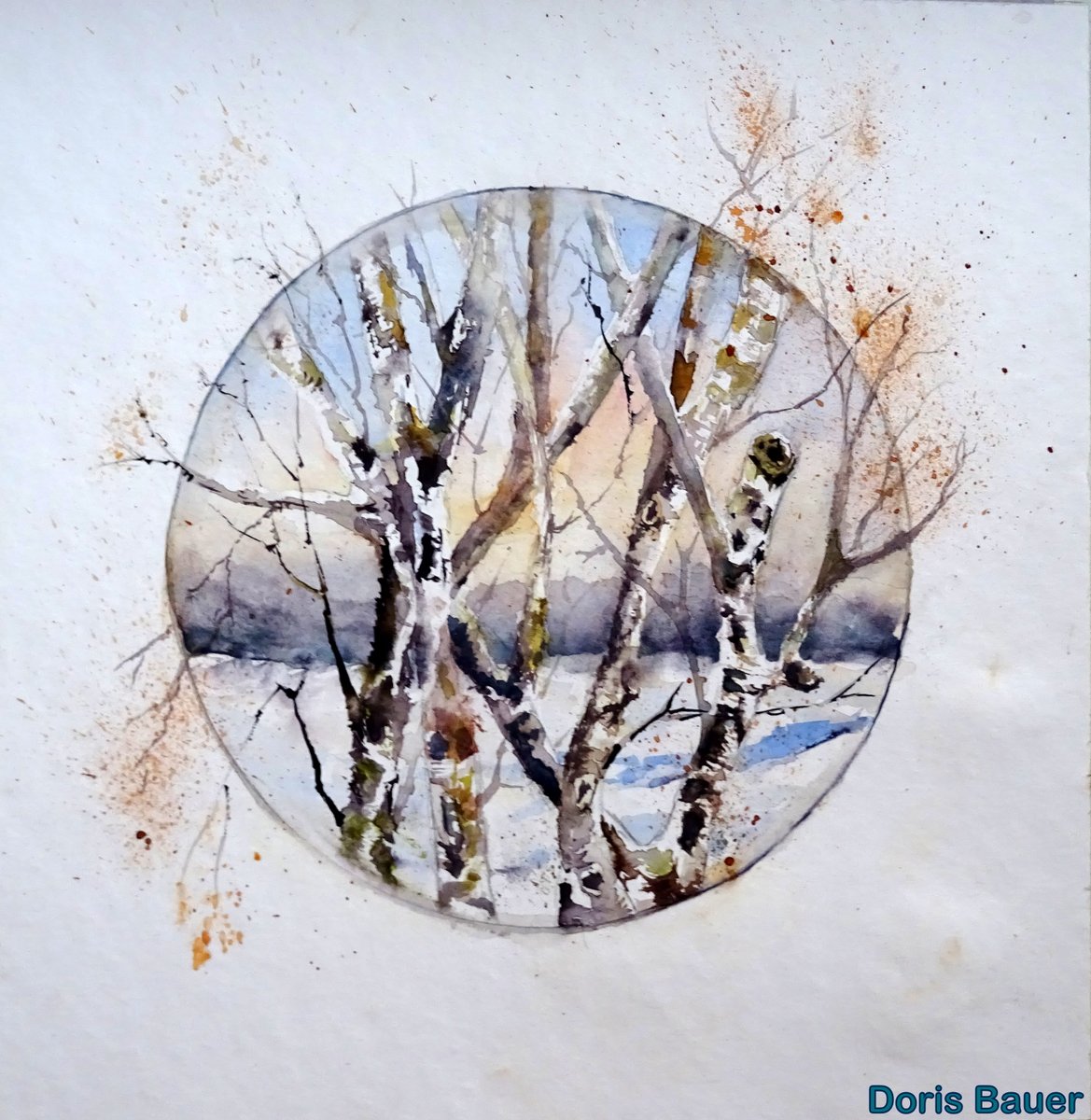 Birken im Winter. Aquarell 25 x 25 cm. dorisbauer.blogspot.com #aquarelle #watercolor #Watercolour #watercolorpainting #birches #landscape #landschaft #WINTER