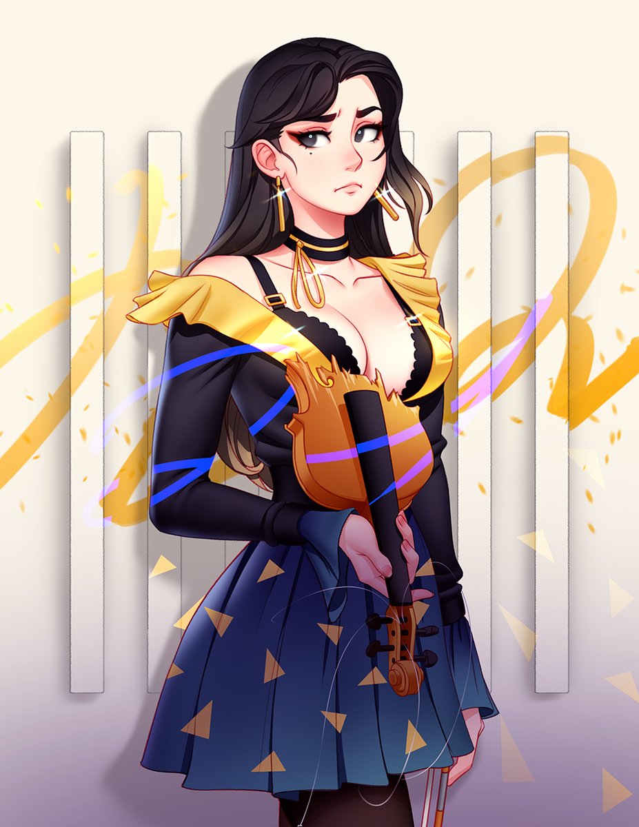 For our latest #LateNightSecretSanta exchange, this time it's @ddengart's Feng cosplaying as my OC Mea! ✨🎻