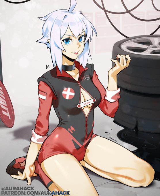 Drew @Unsomnus's OC Luna dressed as my OC (Tera) for our latest #LateNightSecretSanta exchange! 🧛♀️🏁