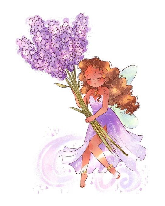 Lavender Fairy 💜 Lavender is by far my favorite floral fragrance, I love using it to relax and feel calm 🌿 #illustration #kidlit #kidlitart #digitalart #photoshop #procreate #art #characterdesign #childrensbook #fairy #lavender