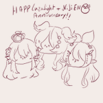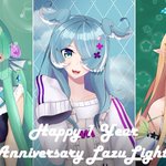 Happy 1st anniversary to my favourite trio! I've been following since your debuts and I'll keep rooting for you! 🎉🥳🎉 #絵リーラ #pendorART #Finanart #PomuPaint #LazuLight #LazuAniProject