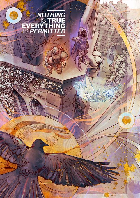 I was commisioned by @Bungie to take part in the ACxD2 crossover event. Did you kow you can climb Trostland church tower? I did not, I do now! Everyone jump!~ @DestinyTheGame @assassinscreed #destiny2art #LeapIntoTheLight