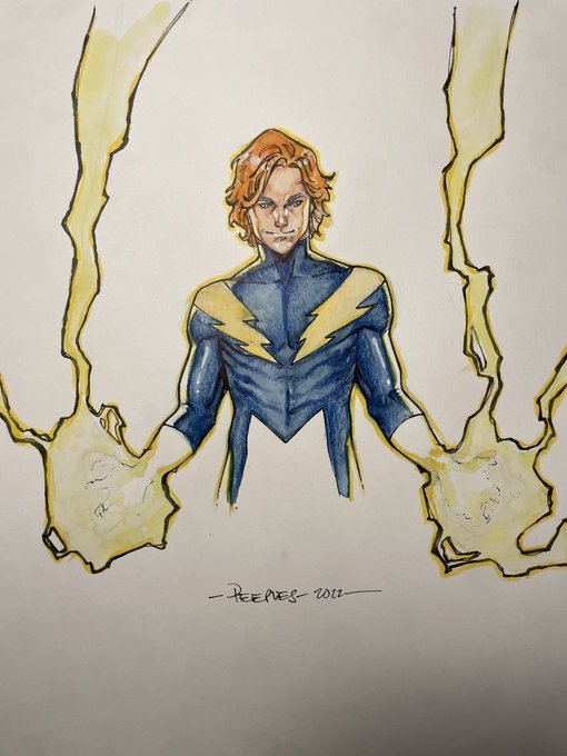 Lightning Lad color commission. #brentpeeples #art #comics #comicbookart #legion #legionofsuperheroes #dccomics #watercolor #winsorandnewton #prismacolor