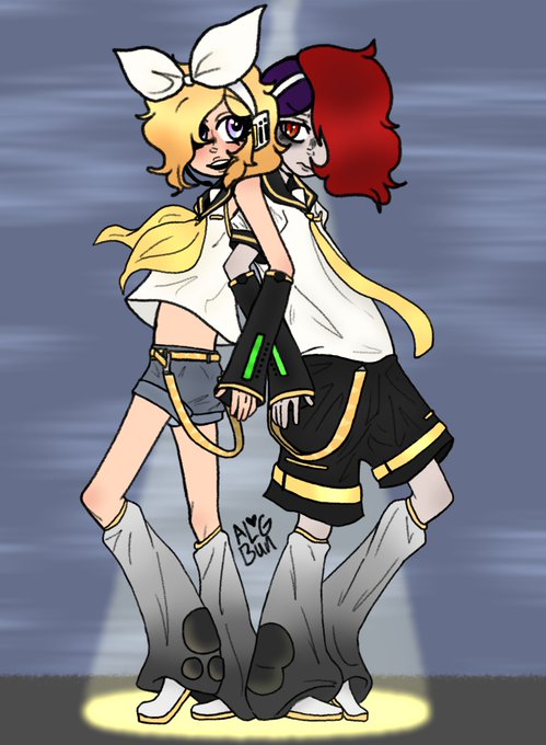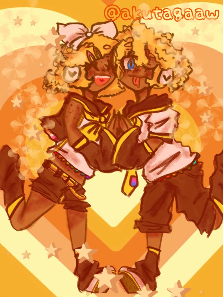 Hehe :]] Oc's London and Chris in Rin and Len cosplay!! <333 #OC #originalcharacter #originalcharacterart #originalcharacters #Artist #ArtistOnTwitter #Art #drawing #digitalart #DigitalArtist #Digital #Rin #Len #VOCALOID #colorfulstage #cosplay #cosplayart