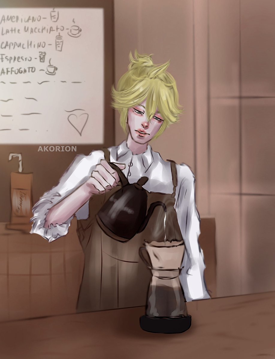 лен бариста!! долго носил эту идею в голове но все же осуществил ее! #len #lenkagamine #vocaloid #piaprocharacters #vocaloidfanart #art #digital
