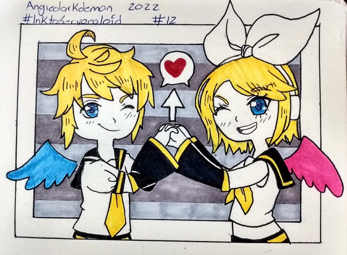 #inktobervocaloid día 12, electric angel, amo la versión de #rinkagamine y #lenkagamine , #rinkagaminefanart #lenkagaminefanart #lenkagaminevocaloid #inktobervocaloid2022 #inktober #inktober2022 #chibiart #sharpieart #traditionaldrawing #traditionalart #angiedarkdemon