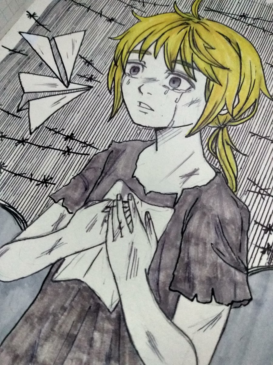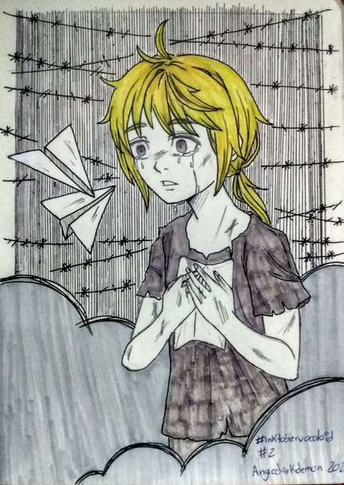 #inktobervocaloid Día 2: prisionero, una de mis canciones favoritas, y con una de mis historias favoritas, pobre Len #inktobervocaloid2022 #kagaminelen #lenkagamine #lenkagaminevocaloid #vocaloidfanart #inktober #inktober2022 #traditionaldrawing #traditionalart #angiedarkdemon