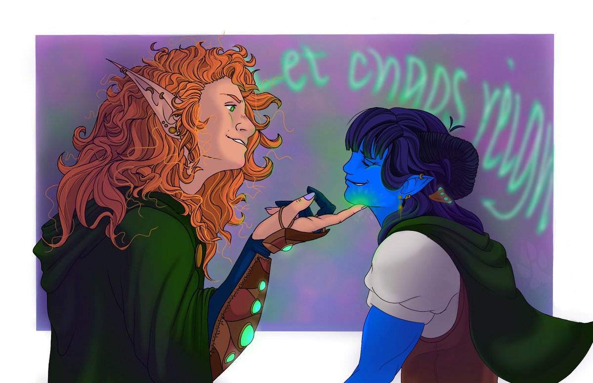 One of my favorite dynamics this last campaign! Jester can make anyone love her, even a not god. #criticalrolefanart #CriticalRole #letchaosreign