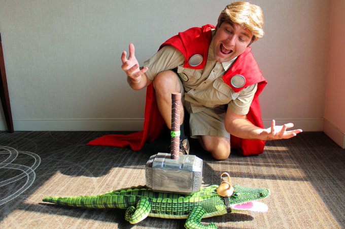 If Aligator Loki exists, that implies the existence of Steve Thorwin. *Australian Accent* "This is my brother Loki, no worries, he's adopted and he's a little grumpy this morning!" Cosplay by Slinus27 Cosplay #cosplay #lctc2021 #lexingtoncomiccon