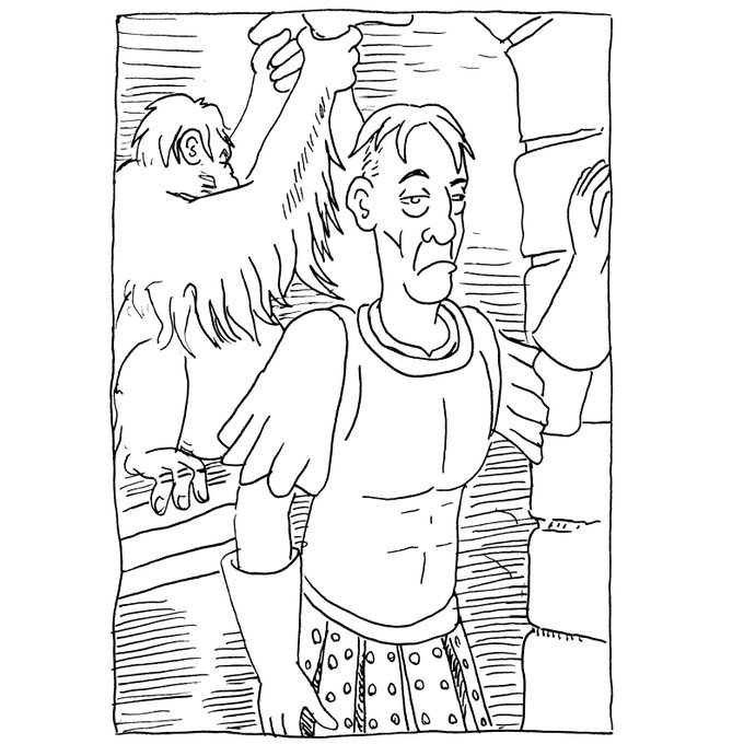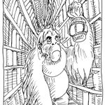 In today's #Discworld #Illustration, the #Librarian gives a #biology #lesson. An #Orangutan is an #ape a #Monkey can't bounce you on your head. #guardsguards #citywatch #TerryPratchett #SamuelVimes #PenandInk #seattleillustrator