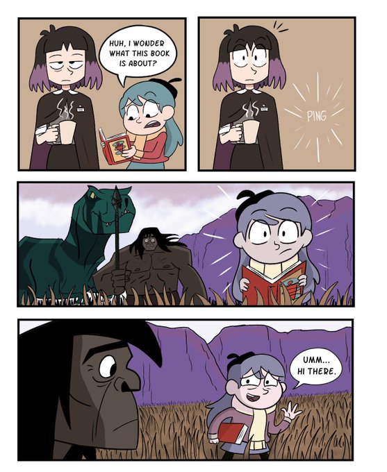 A HildaXPrimal crossover that we’ll never see. #hildatheseries #hildanetflix #HILDA #CartoonNetwork #hildafanart #hilda #HildaTheSeries #librarian #genndytartakovsky #ArtistOnTwitter