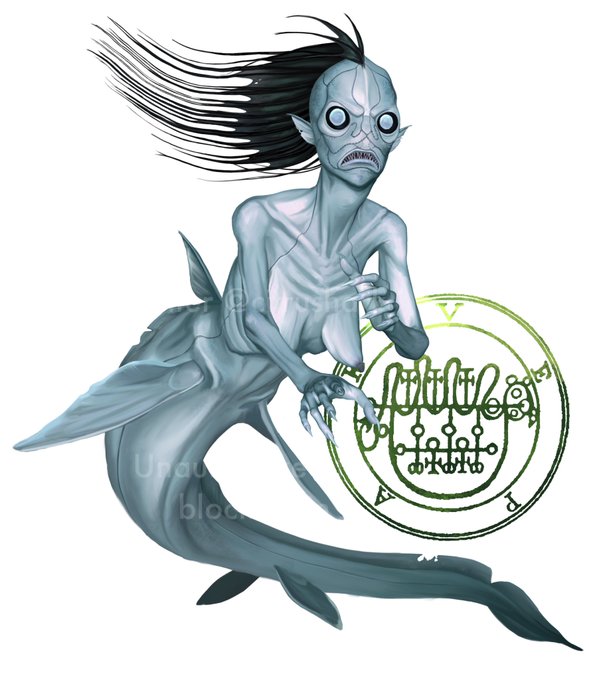 Just in time for the last day of #mermay! Vepar, the Goetic demon for #librumprodigiosum Design is based largely on the abyssal ghostshark/chimera, while the ‘hair’ on black crown-tailed betta