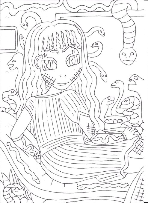This is the draw of the thirty day of #Inktober:Slither with #LidiaVibora #Pretty #PrettyMaripaz #MaripazPretty #Inktober #PrettyInktober #SixElements #SeisElementos #SixStars #SeisEstrellas #Lidia #2021 #Slither #Deslizarse #InktoberDay30 #InktoberDia30 #Inktober2021
