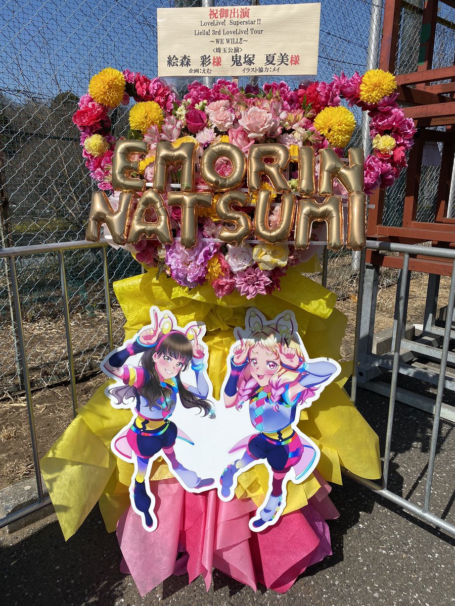「ラブライブ!スーパースター!! Liella! 3rd LoveLive! Tour ~WE WILL!!~<埼玉公演>」にてLiella!18人と結那さん・マルガレーテちゃん宛でそれぞれに計10基のフラスタを贈らせて頂きました💐 ご参加頂いた皆さん本当にありがとうございました! #Liella_3rd_埼玉Day1 #Liella_3rd_埼玉Day2 ↓続く twitter.com/i/web/status/1…