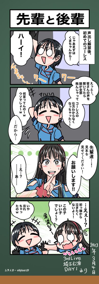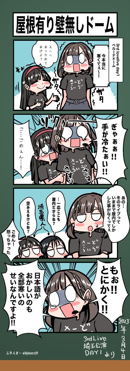 #Liella_3rd_埼玉Day1 ありがとうございました! みんなの声聞こえて、一緒に初の声出しありライブを作り上げてくれて、本当に幸せです! 最後のMCから寒かった🌪️終わってすぐベンチコート着てたよ! #Liella #lovelive twitter.com/lovelive_staff…
