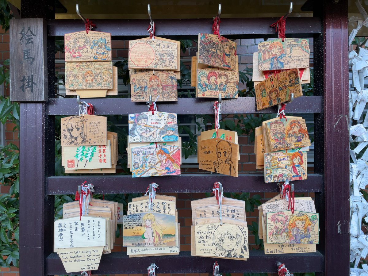 穏田神社の絵馬掛け場、今年は穏田にも結構絵馬奉納しましたね〜。 来年はアニメ3期や新1年生の誕生日絵を頑張りたいw 原宿ゲーマーズのキッチンカーは愛知に出張中。自分はLiella!3rdは埼玉公演まで不参加ですが成功を願っています! #lovelive #Liella #Liella_3rd_愛知Day1