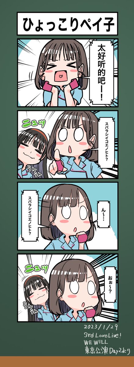 今回フラスタ用に描いたイラストです。 ペイちゃんとすみれの元気いっぱいな姿を可愛く表現出来たらいいなと思って描きました🪐 #Liella_3rd_東京Day1 #Liella_3rd_東京Day2 twitter.com/pippie_an/stat…