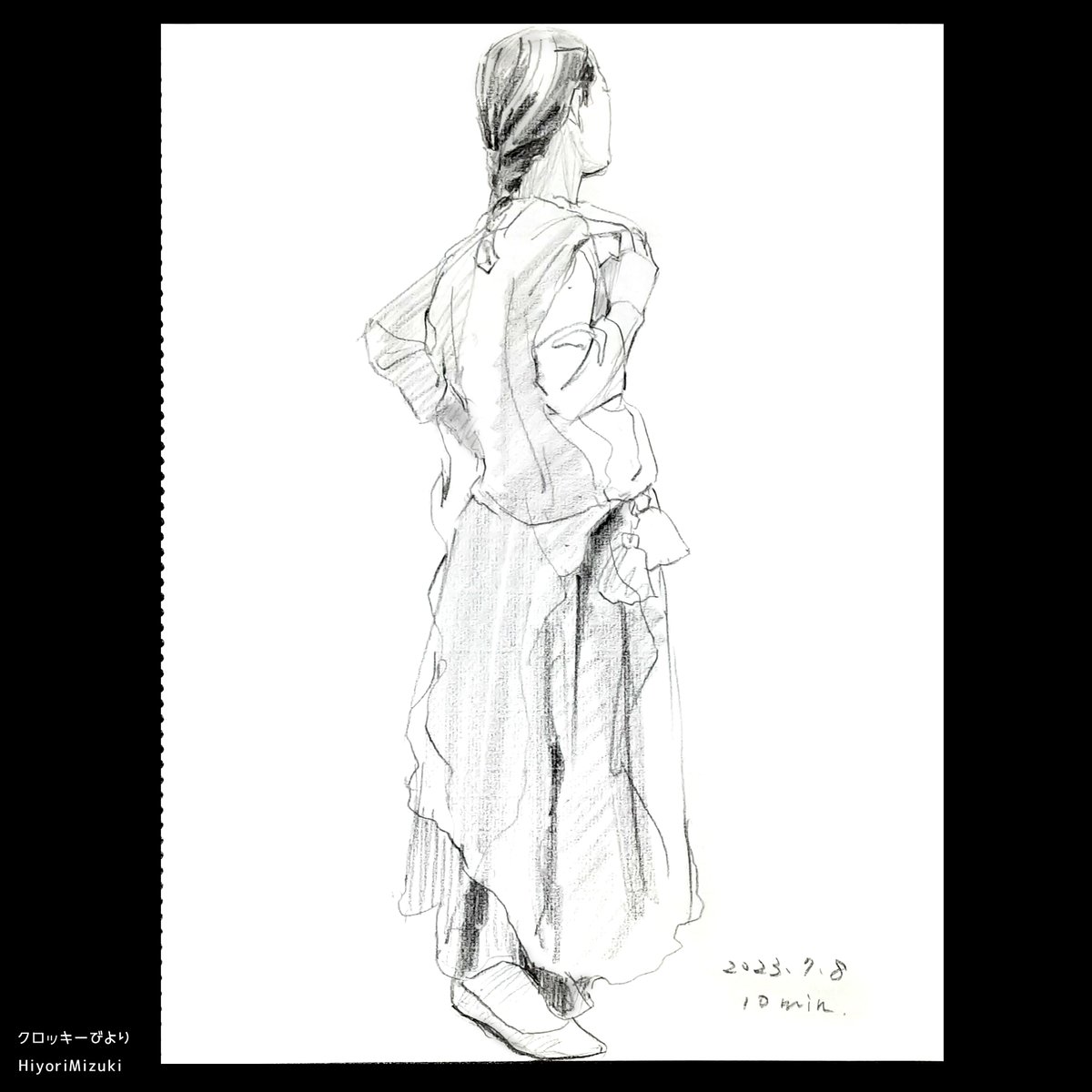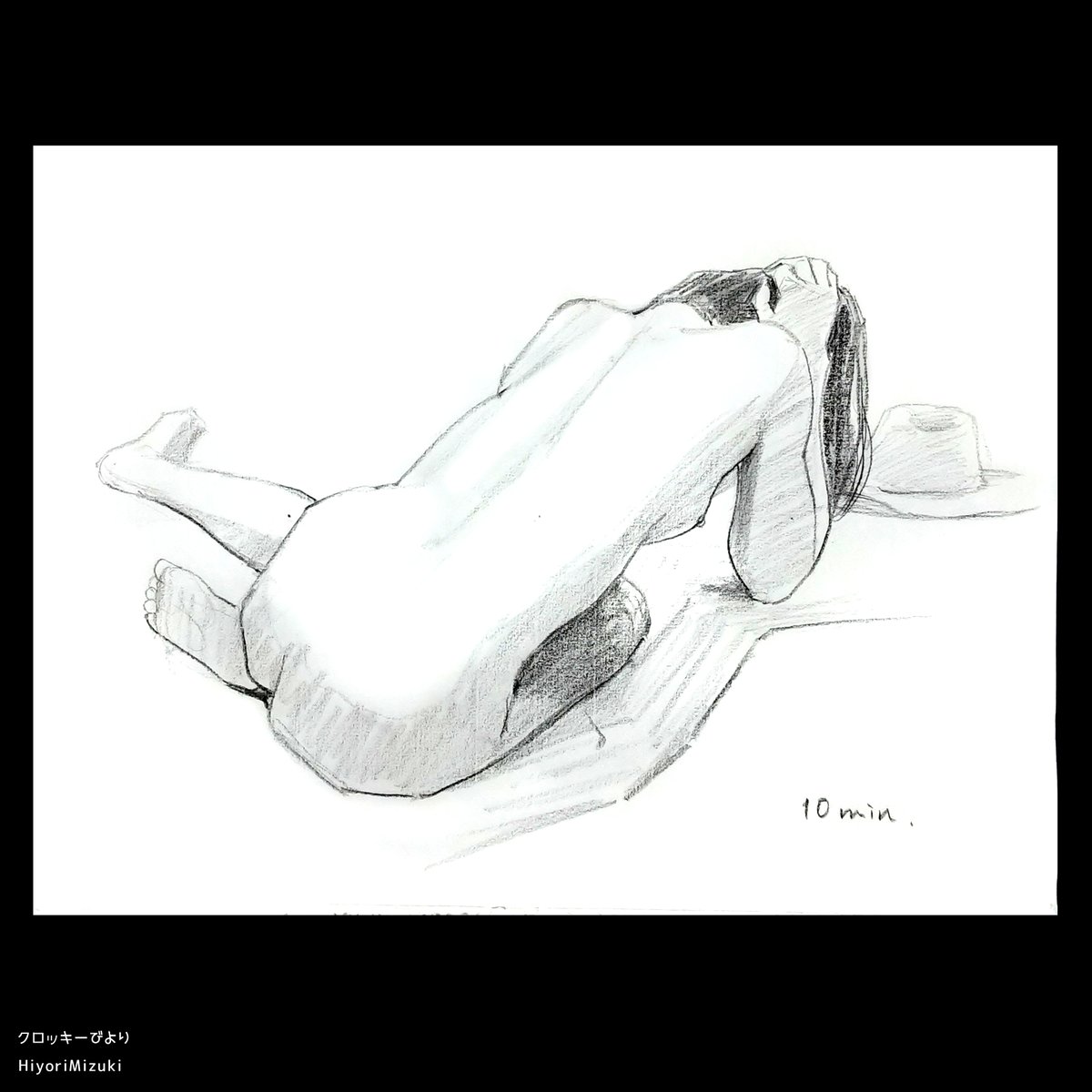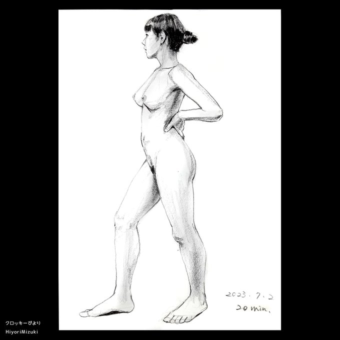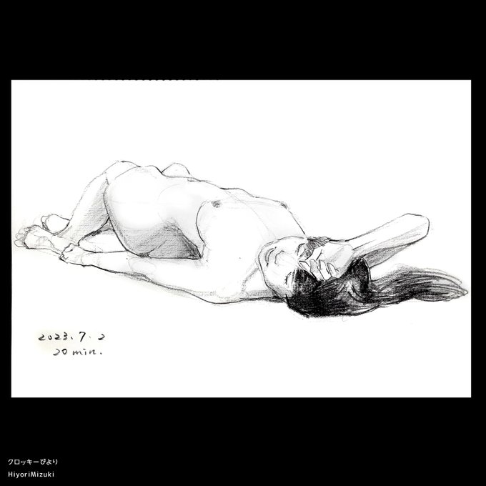 7月8日、東京 雑司ヶ谷で開催された、ノンキなデッサン会(@Kh870k)で描きました。 F6(410×318mm) のクロッキー帳に8B鉛筆ステッドラーで作画。10分ポーズ。 #クロッキー #クロッキー会 #デッサン #LifeDrawing #lifedrawing #鉛筆 #アナログ絵 #ノンキなデッサン会 #drawing
