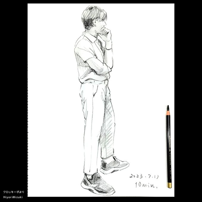 7月13日、東京 雑司ヶ谷で開催された、ノンキなデッサン会(@Kh870k)で描きました。会場は駅直結。長身で美形なモデルさんでした 三菱鉛筆 水性ダーマトグラフで作画。10分ポーズ #クロッキー #クロッキー会 #デッサン #LifeDrawing #lifedrawing #鉛筆 #アナログ絵 #ノンキなデッサン会 #drawing