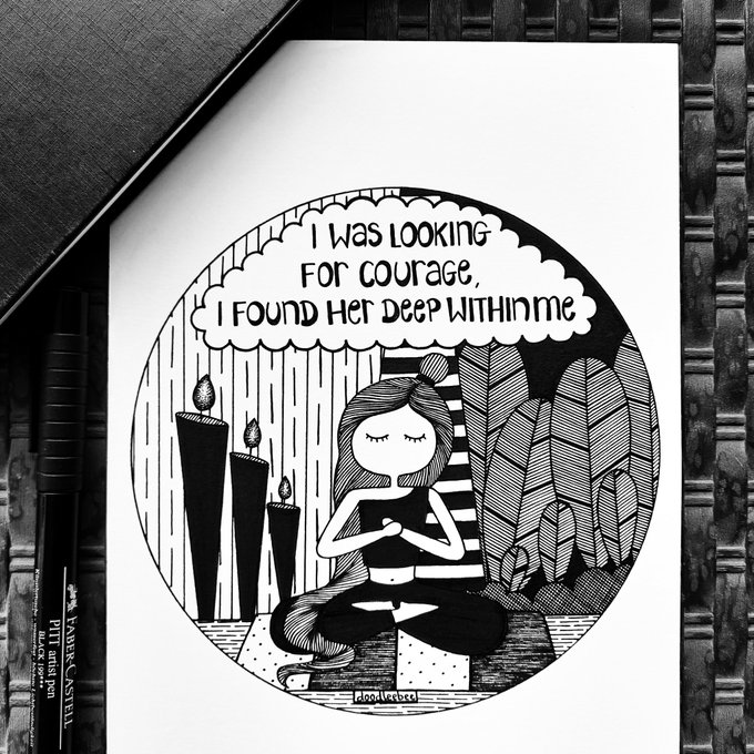 You cannot even begin to comprehend the power of the deep reservoir of strength, courage & compassion that you have within to endure anything that you face in your life. #Doodleebee #affirmation #courage #lifelessons #yogi #doodle #art