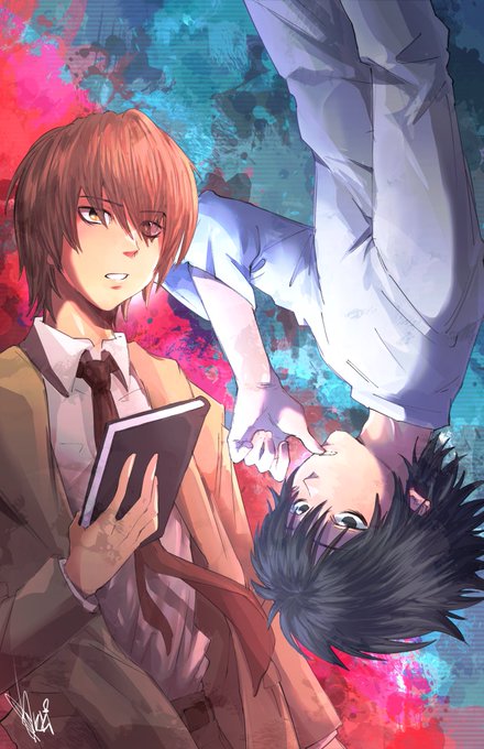 redraw of my first eeever death note fanart……. The craziest guys ever……. #deathnote #deathnotefanart #lawlight #lightyagami