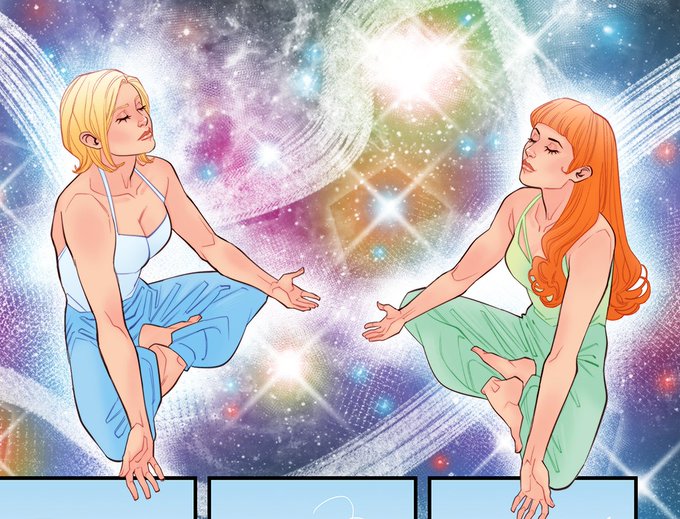 #Girlfriends - from #PowerGirl backup story in #ActionComics #1052 - words by the great #LeahWilliams - #LilithClay #Omen #DCComics #comicsart #KarenStarr #comicspage #digitalart #margueritesauvage #artistontwittter #artistsoftwitter #supermanfamily