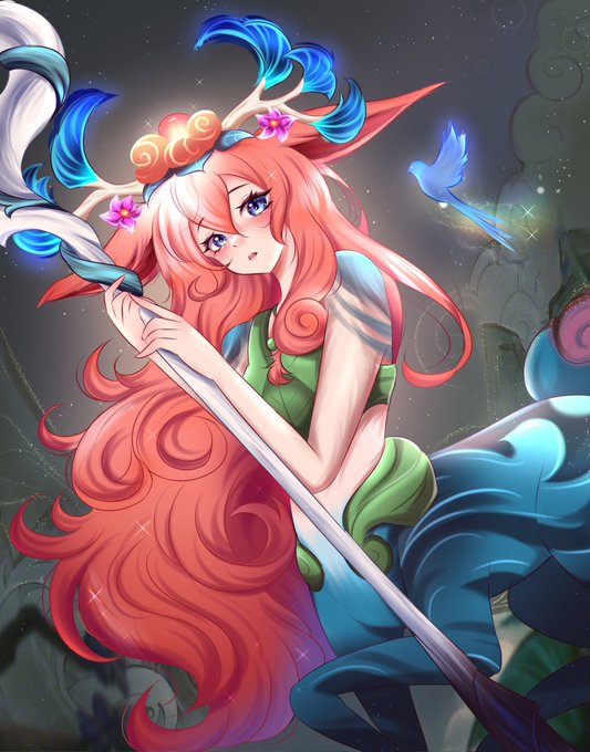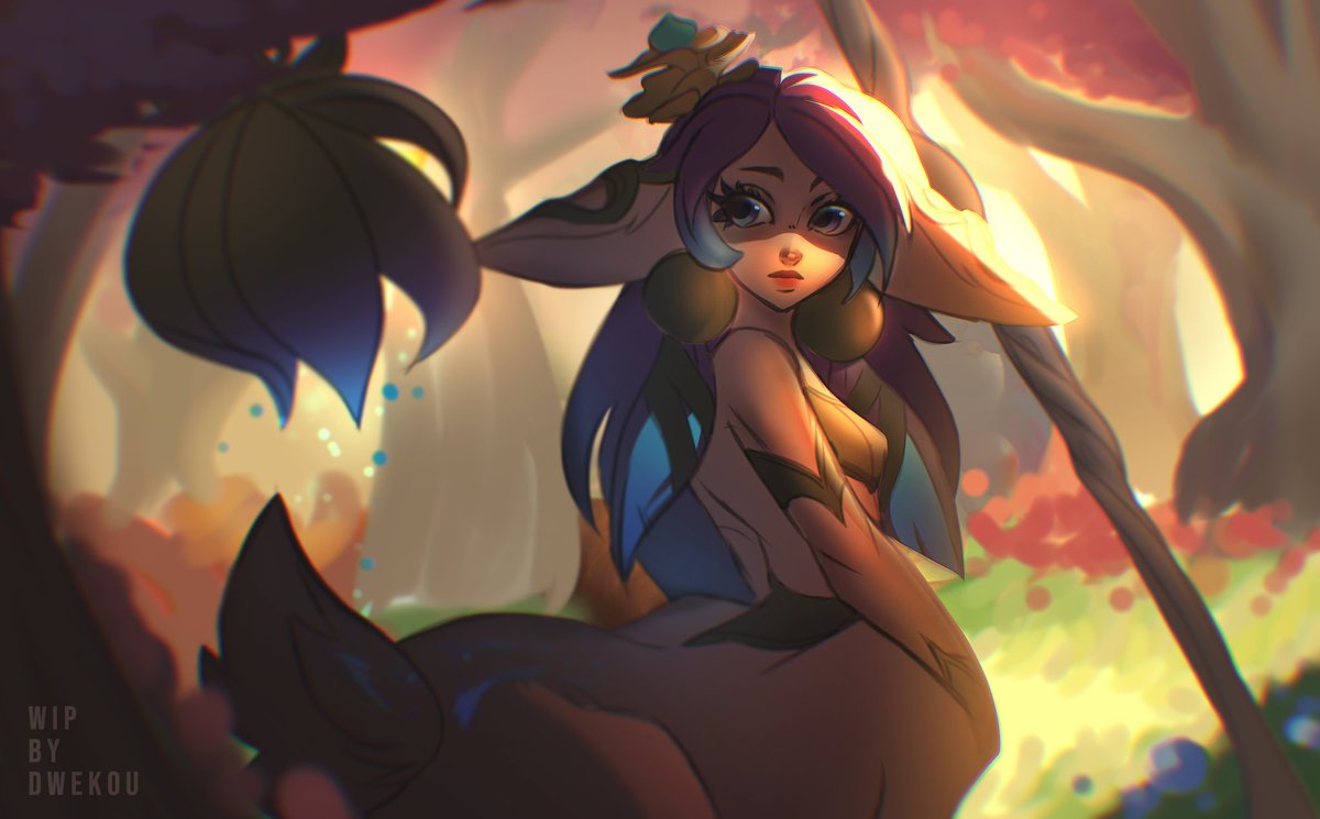 Lillia work in progress, I quite like it so I'll try to make it into a finished and rendered piece! (also a gift for dumbs) #lillia #LeagueOfLegends #artoflegends