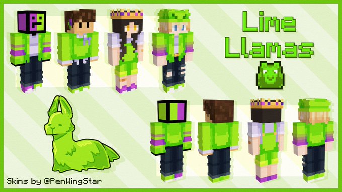 MCC17 Lime Llamas skins for @SolidarityCoUK, @Failwhip, @GeminiTayMC, and @realQuig!!! #mccfanart #limellamas #MCChampionship #Geminitayfanart #fwhipfanart #solidaritygamingfanart #quigfanart