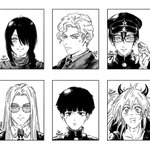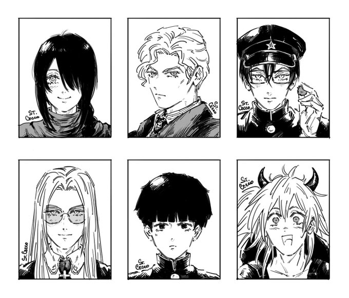 just wanted to draw characters from my favorite titles, tee-hee #jjba #chainsawman #litchihikariclub #hellsing #mobpsycho100 #dorohedoro
