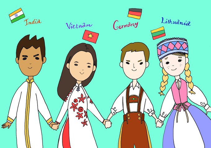 世界はみんな仲良しシリーズ 民族衣装かわいい🙏 #イラスト #illustration #イラスト好きな人とつながりたい #India #Vietnam #Germany #Lithuania