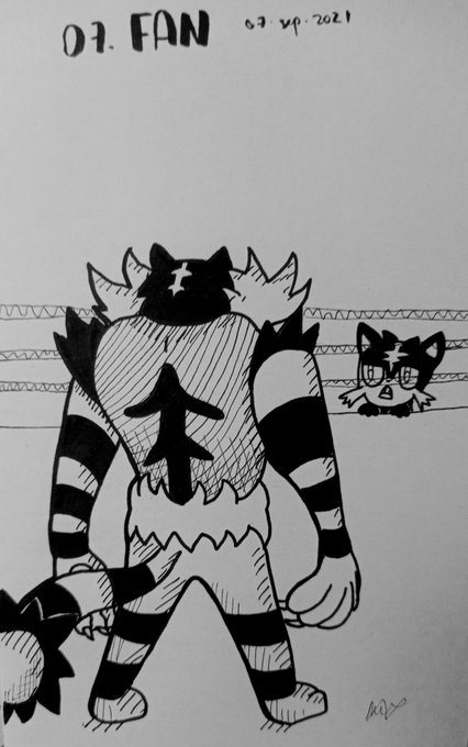 #inktober #inktober2021 #inktoberday7 #inktoberfan #Litten parece que le esté mirando algo a #incineroar pero no era la intención es la cochina mente de @edoMaister x")
