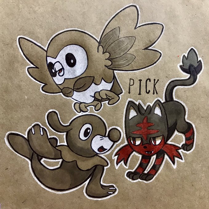 Posting early today to be able to rest more and stress less. #inktober2021 #inktober2021day10 #pick #pokémon #rowlet #litten #popplio