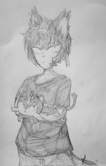 ✏️A quick sketch I've recently made on bed (due to a cold 😷) to test a different drawing app on my Android tablet. The brushes are nice on this one but it's a pity the interface isn't as good as other program I've tried before. #litten #ニャビー #digitalart #illustration