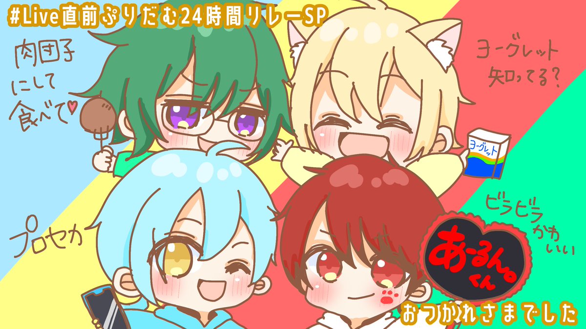 ぷりだむ24時間リレーお疲れ様でした! どの枠もとっても楽しかったです♪ ひまそあコラボが神回でした🤣 楽しい時間をありがとう! #Live直前ぷりだむ24時間リレーSP #ぷりだぁと #そあらーと #ぽちっとあーと #あーるんのいらしゅと #ひのずかん
