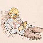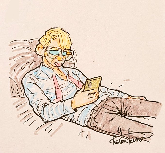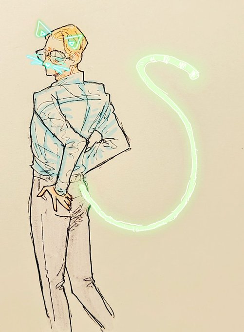 #イラスト #illustration #BL #OC #LivelyTwoGuys #猫の日 サーシャに加工されたリック。🐈️ Sasha drew a picture on a photo of Rick.🐈️