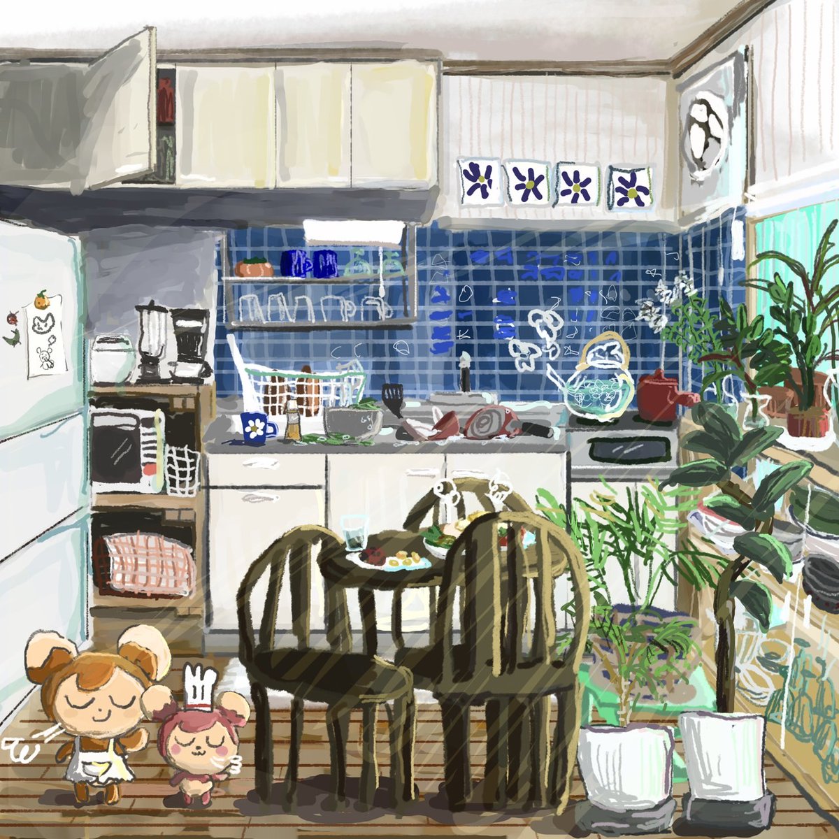 #LivlyAnniversaryFanArt 2周年おめでとうございます㊗️ 私自身のゲーム内のホム・アイランドと大好きなグレムリンちゃんを描きました。これからもいっぱい楽しませてもらいます❣️
